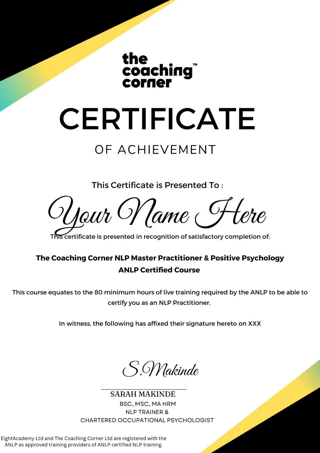 The course lasts 12 months in total with 3 hours every other week for attending live accelerator sessions. You also have 2 x 121 sessions included. This means that you will have obtained a total of over 80 hours live NLP training to meet the requirements of the Association for NLP (ANLP) by the end of the course.